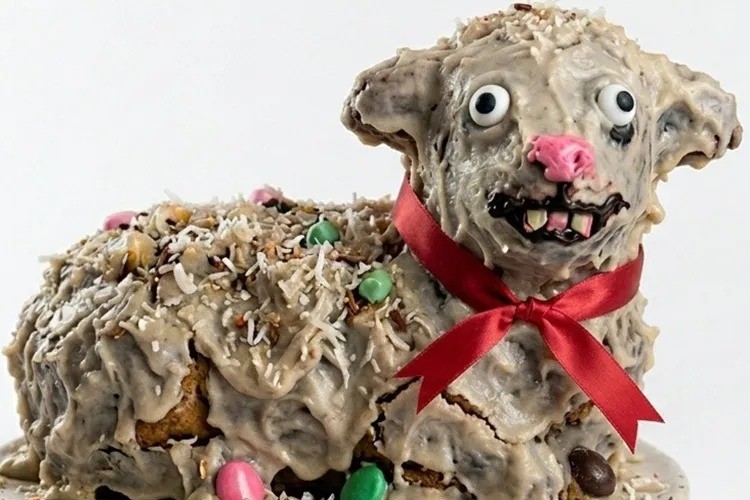 Uma brincadeira de 1º de abril quase fugiu do controle para a Homestead Kitchen Artisan Cakery, uma pequena padaria em Detroit, nos Estados Unidos. A proprietária da confeitaria publicou no Instagram a foto de um bolo de Páscoa em formato de cordeiro com aparência perturbadora: olhos esbugalhados, dentes tortos e cobertura escorrendo. Apesar de a imagem ter sido gerada por inteligência artificial, o realismo do "horror" gerou uma onda de mensagens de preocupação e até críticas religiosas, forçando o estabelecimento a se explicar e, curiosamente, a lançar o produto na vida real.