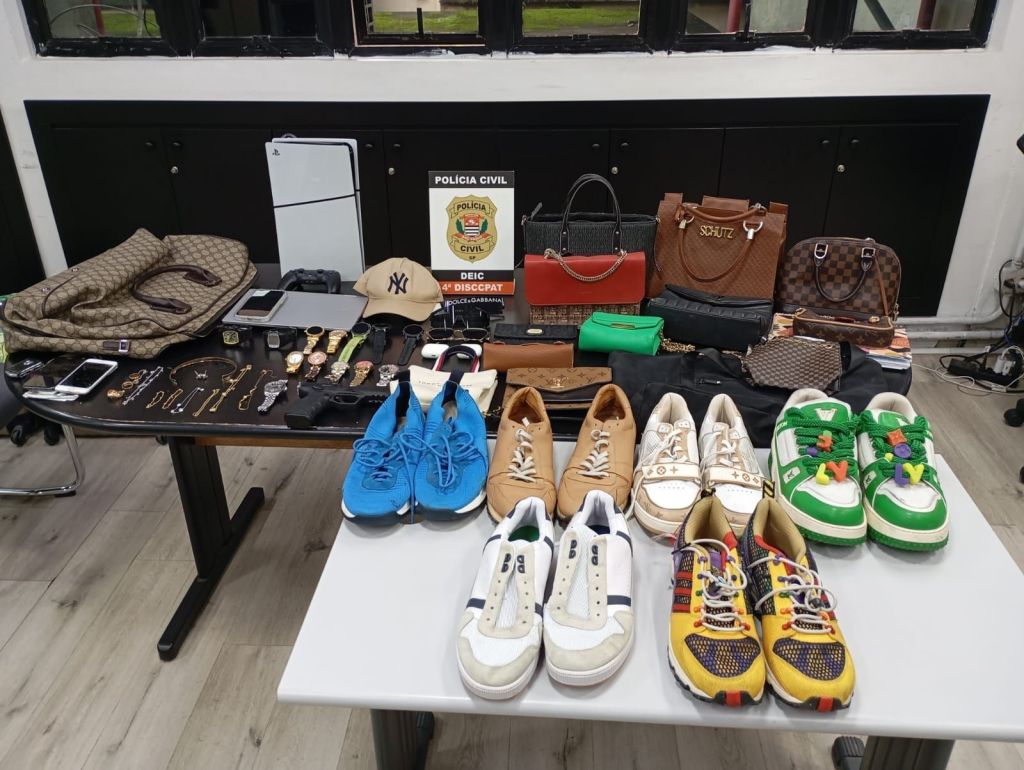 No apartamento dele ainda foram encontradas bolsas, relógios e tênis de grifes. Também uma pistola turca nove milímetros.