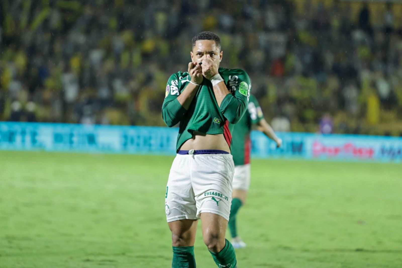 Carlos Miguel deu um chutão para frente, Flaco López desviou de cabeça, o goleiro Jordi saiu todo atrapalhado, não fez o corte e se chocou com Jhon Arias. A bola ficou se oferecendo para o jovem centroavante, que aproveitou para ampliar a vantagem palestrina no agregado do confronto.